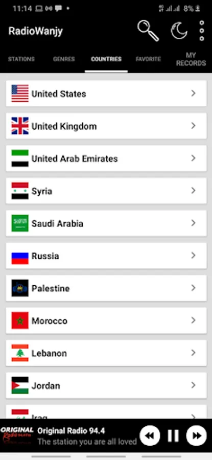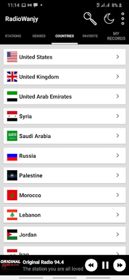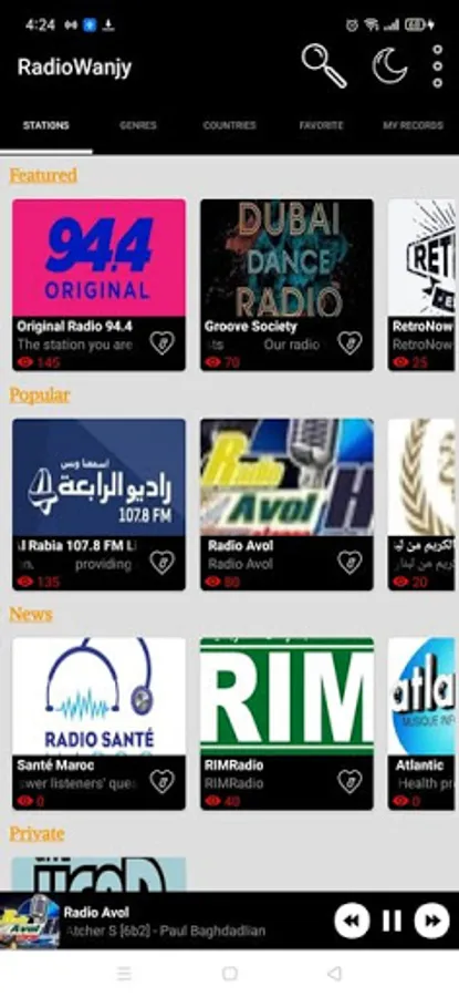 مع تطبيق راديونجي يمكنك الاستماع لكافة محطات الراديو العربية و العالمية و مع امكانية تسجيل المقاطع الصوتية من البث و مشاركتها مع الاصدقاء مباشرة