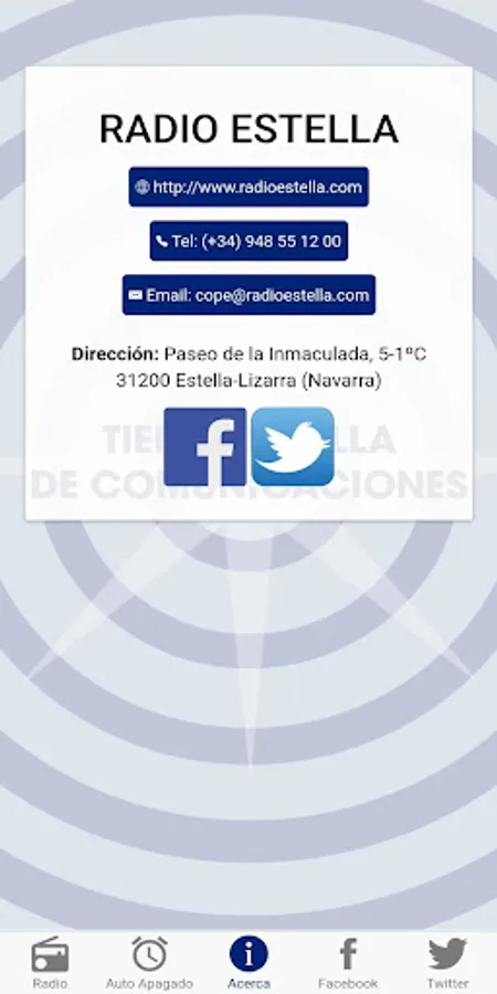 Tierra Estella de Comunicaciones is a local company that manages three radio stations in this region of Navarra: Cope (93.4 FM) with information, outreach and entertainment; Cadena 100 (99.6 FM), with the best musical variety; and Estella Lizarra FM (89.5), with 100% local programming. Windows open to all voices that have something to say of interest in this region. The best showcase to promote any activity (economic, cultural, social, health, sports, institutional, etc.), through commercials, which is what advertisements are called on the radio. Sociological studies confirm that it is the most reliable means of communication. And, as a consequence, its effectiveness in the audience is guaranteed. Whoever tries, repeats.
