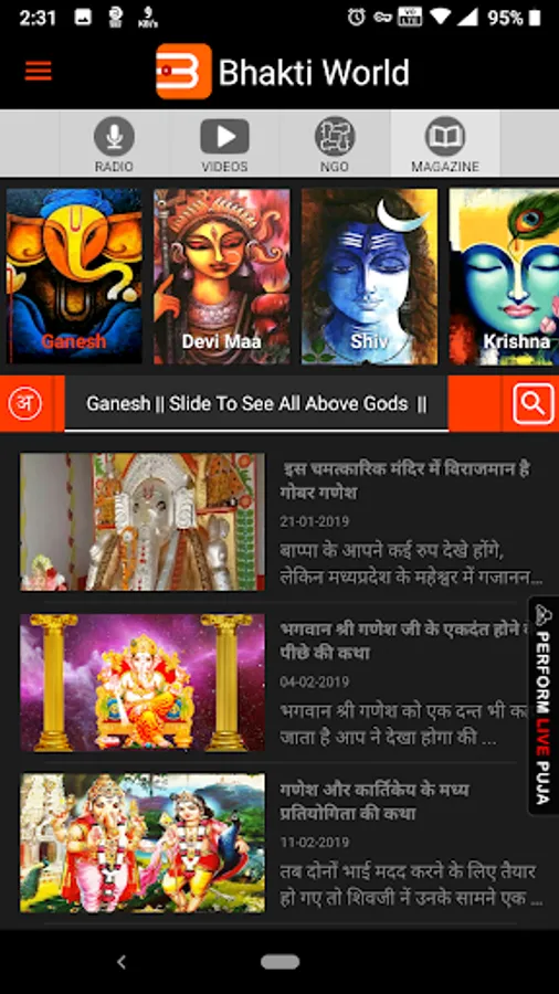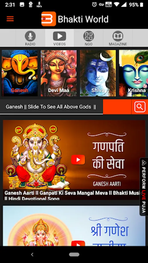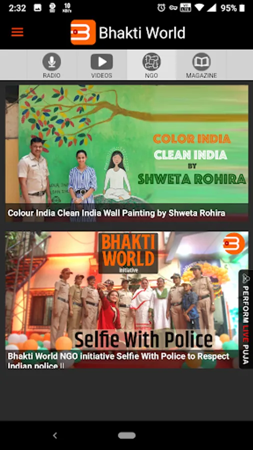 Bhakti World App encompasses – Radio, Video, Magazine and Bhakti World NGO all in ONE APP.