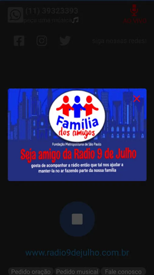 Rádio 9 de Julho is a Brazilian radio station in the city of São Paulo belonging to the Archdiocese of São Paulo, operates at 1600 kHz with a power of 100 kW