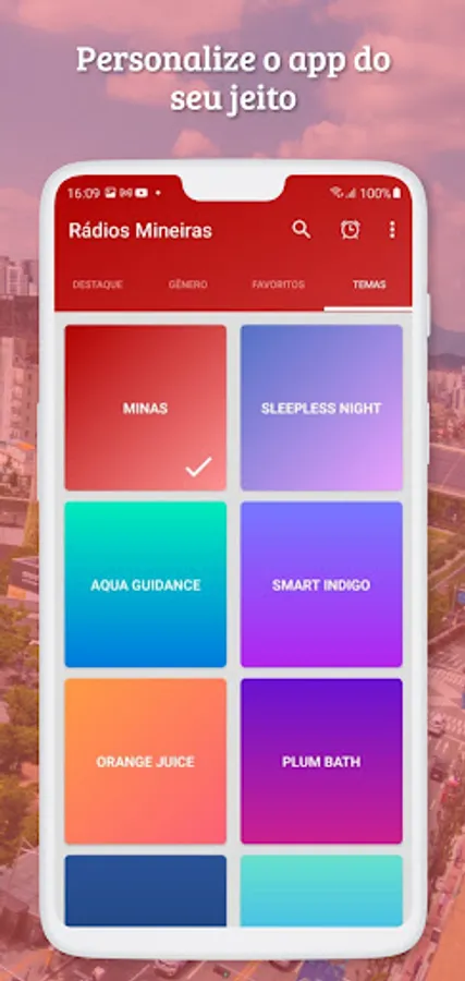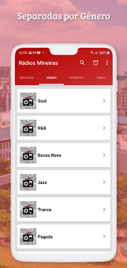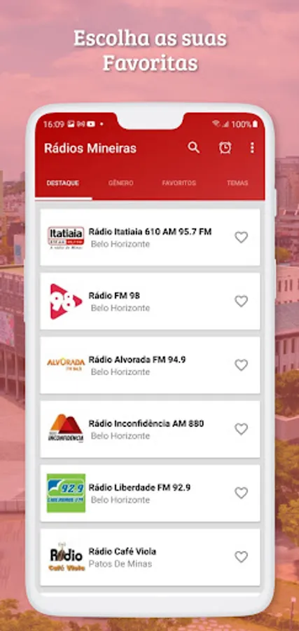 In it you listen to the online radio from Minas Gerais of different categories such as Pop-Rock, Gospel, Football, Country, Forró, Sports, Journalism, Catholic, Eclectic and Community.