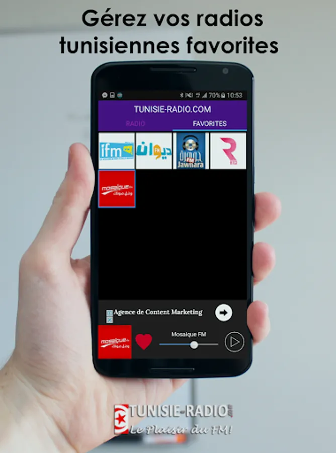The application site Tunisie-Radio.com lets you play live the most popular Tunisian radios in your office, your home or your radio through compatibility with all internet connections networks (3G, 4G and WiFi) .