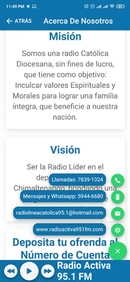 Vision: To be the Radio Leader in the department of Chimaltenango, offering Catholic programming of varied tastes.