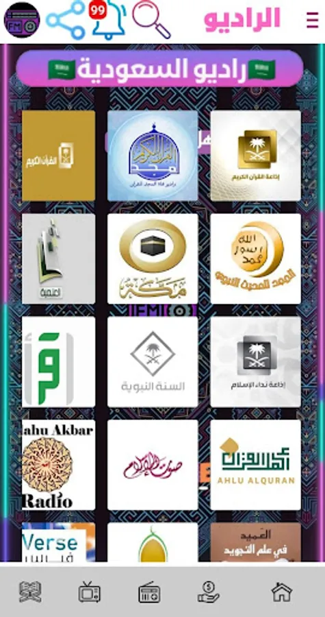 Seventh: The application contains the stations of all Arab countries, such as Radio Saudi Arabia, the Emirates, Qatar, Bahrain, Oman, Yemen, Syria, Iraq, Palestine, Tunisia, Algeria, etc.... 🌍