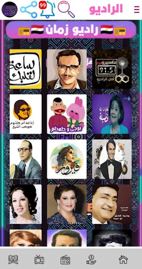Second: It is very suitable for the elderly (in the past 😅) because the application contains old radio stations such as Umm Kulthum, Nightingale, Muhammad Rushdi, Lily Murad, etc....❤️