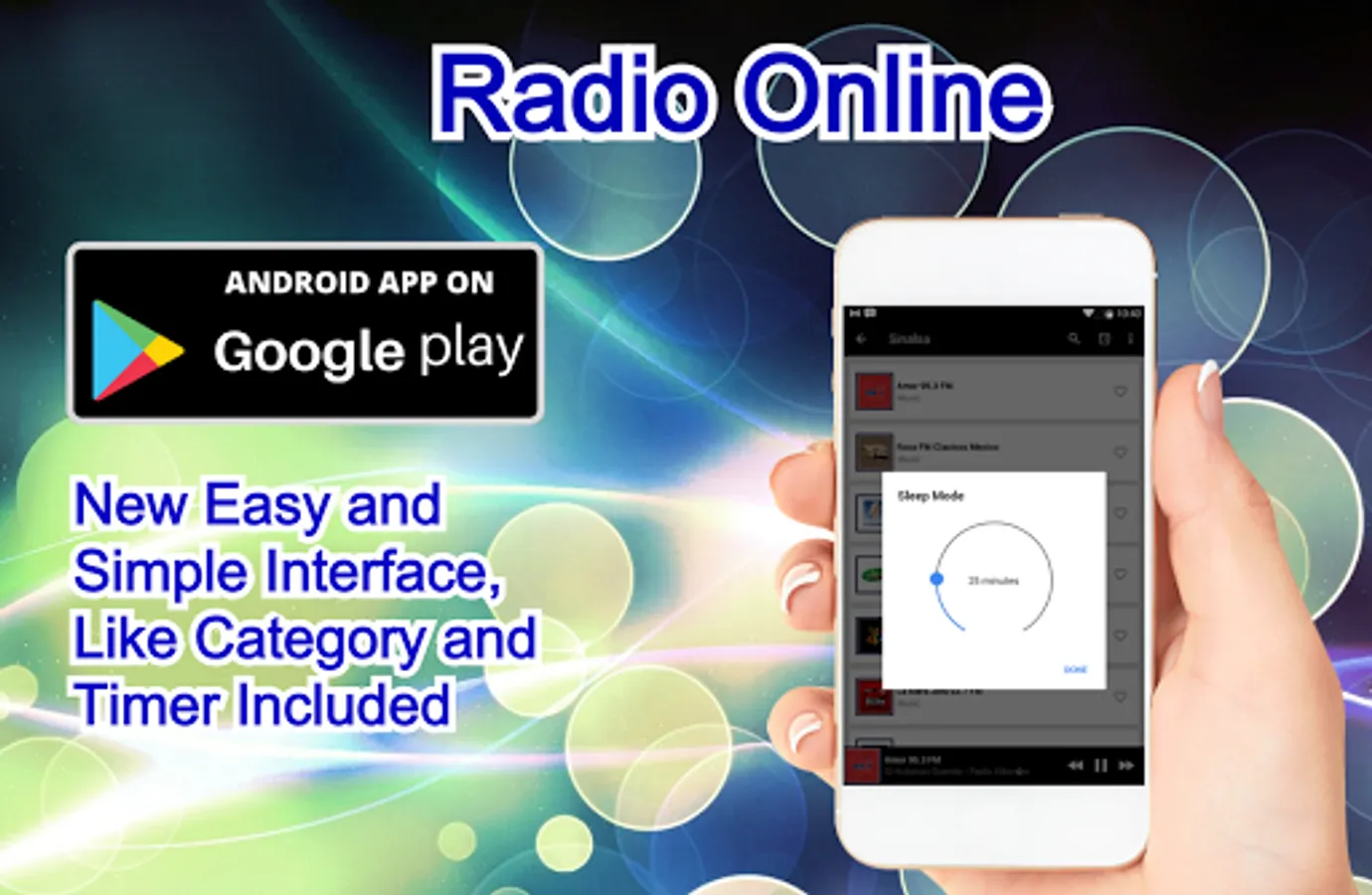 • Listen to your favorite radio, while you go to bed, without worrying about exhausting your data