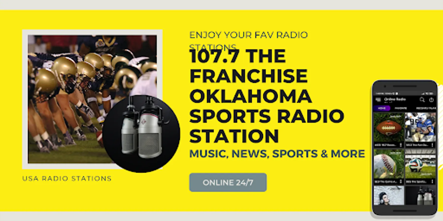 Radio sports "107.7 The Franchise Oklahoma" in a single click you will enjoy your favorite radio station.