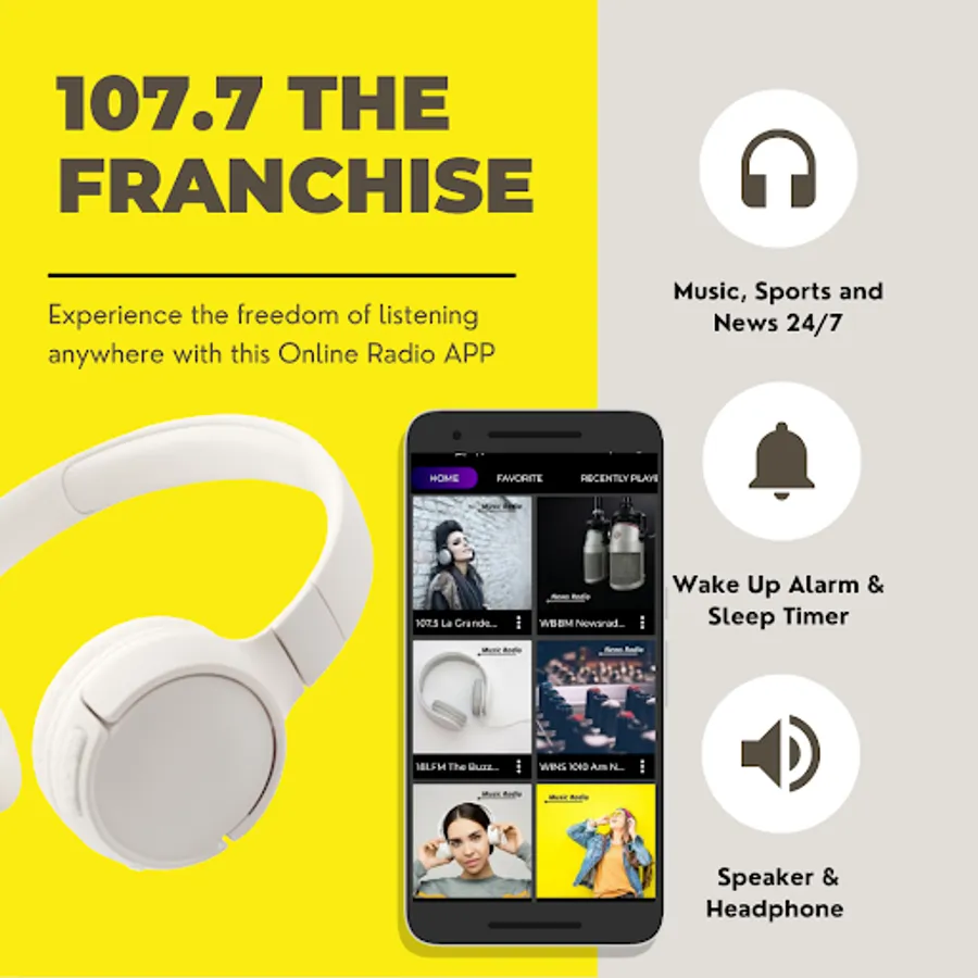 This is a NON OFFICIAL APPLICATION of "107.7 The Franchise Oklahoma", if there is any problem with "107.7 The Franchise Oklahoma" please contact us.