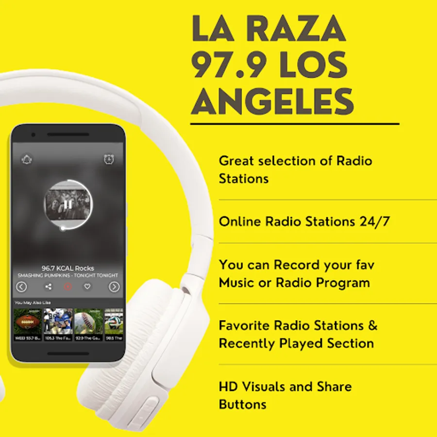 This app "La Raza 97.9 Los Angeles 97.9 Fm" has a modern, elegant and easy-to-use interface; and gives you the best experience when listening to music, sports, talk shows or La Raza 97.9 Radio.