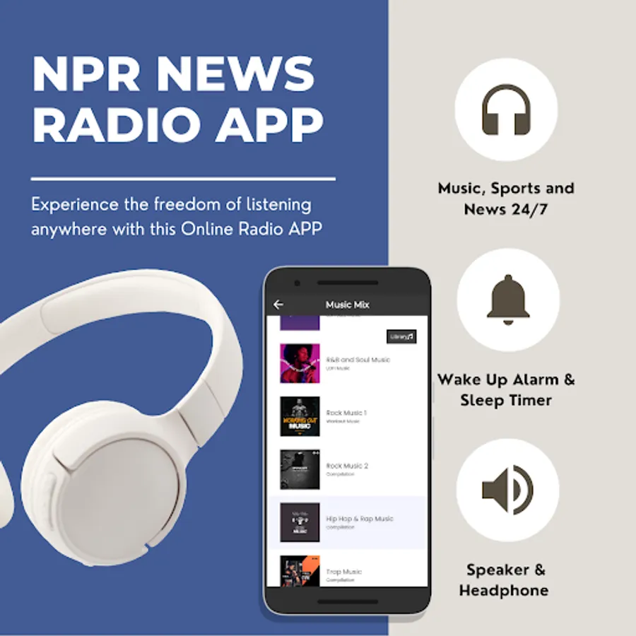 This app "NPR Radio App" has a modern, elegant and easy-to-use interface; and gives you the best experience when listening to music, sports, talk shows or NPR News Now.
