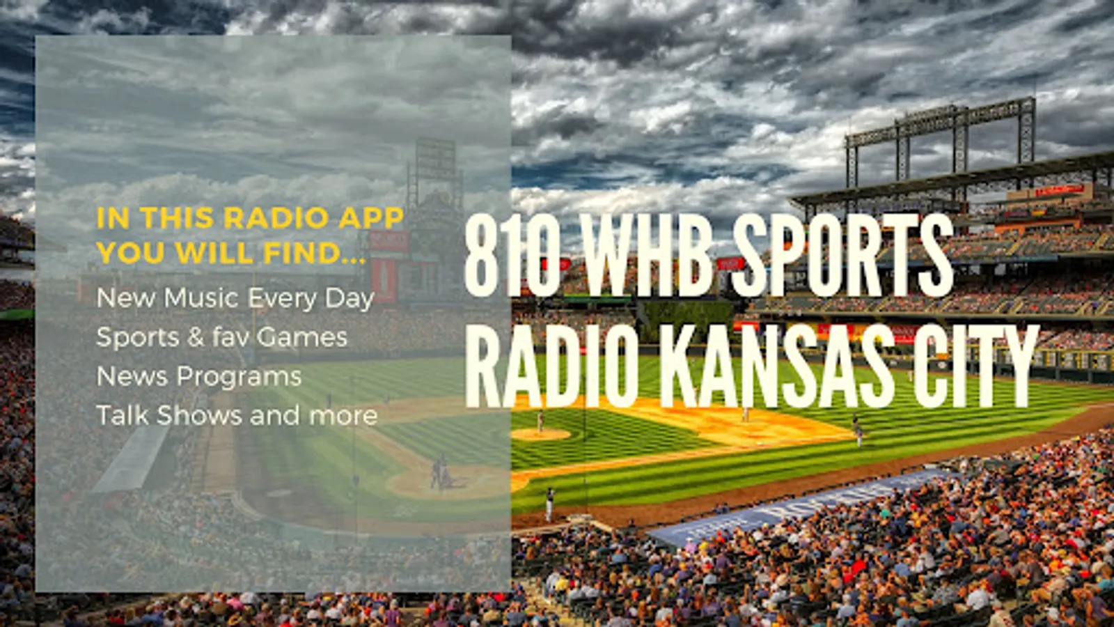 This app "810 WHB Sports Radio Station" has a modern, elegant and easy-to-use interface; and gives you the best experience when listening to sports, music, talk shows or news.