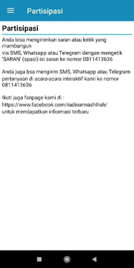 88.2 FM Radio An-Nashihah is an Islamic propaganda media oriented towards the deepening of the Qur'an and hadith, building togetherness, and avoiding everything that endangers the world and the hereafter.