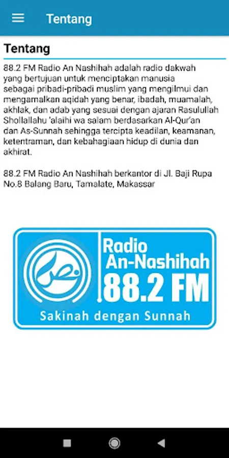 Ahlan wa sahlan in the streaming application 88.2 FM Radio An-Nashihah Sakinah with Sunnah.