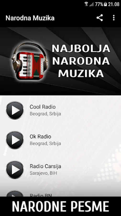 Popularna narodna muzika na vasem telefonu. Uzivajte uz zvuke prave muzike!