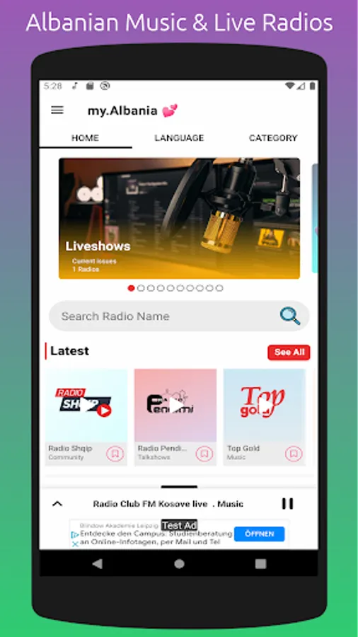 Albanian Music & Live Radio App is free of cost. This app is made with modern technology and a beautifully designed & nice interface.