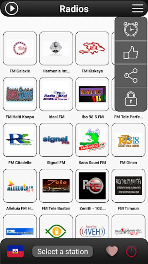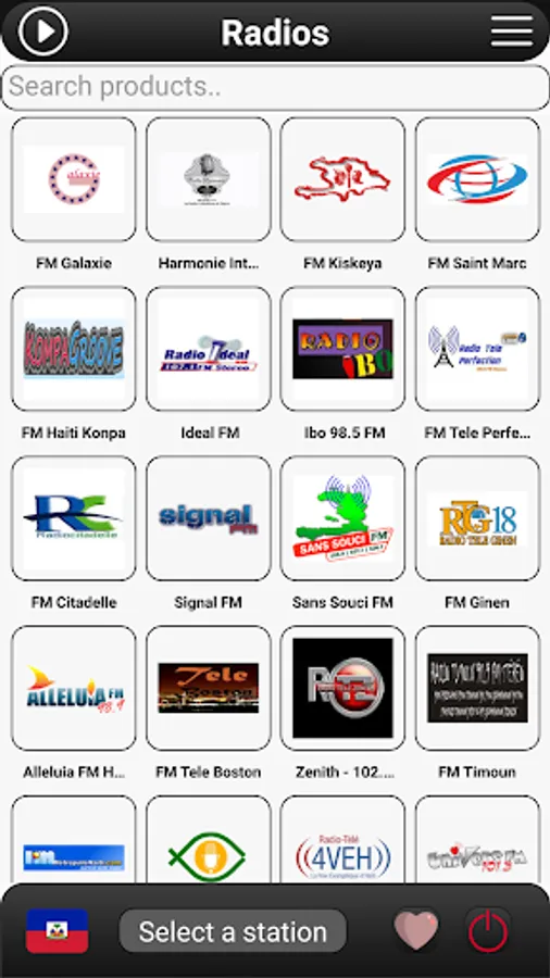 -> You don't need to know the frequency so you can tune into the Radio Haiti of your choice. Just touch the name of the FM or AM Radio station and enjoy.