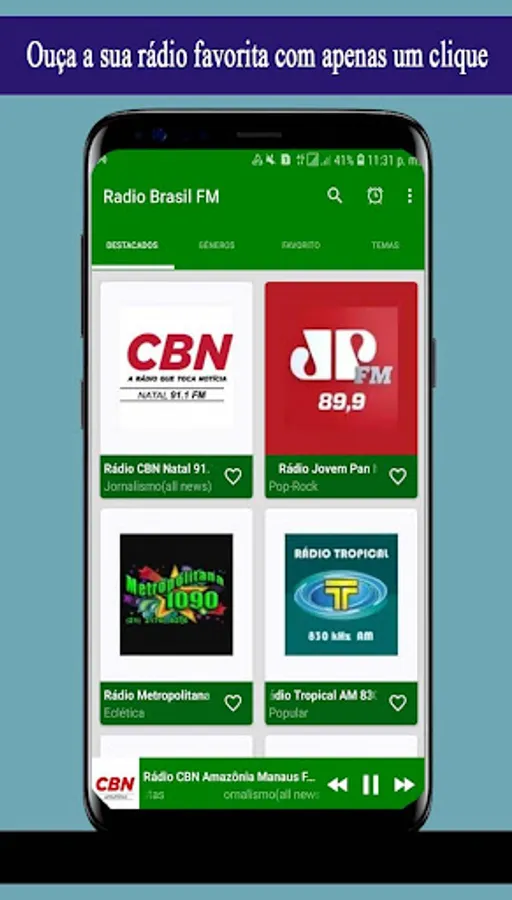 If you are a lover of radio brazil am fm live, this application is perfect for you. It is made so that you can enjoy many Brazilian radio stations your best app, sports, Music, Entertainment live with brazil radio stations Player of the different radio interpreters that broadcast live.