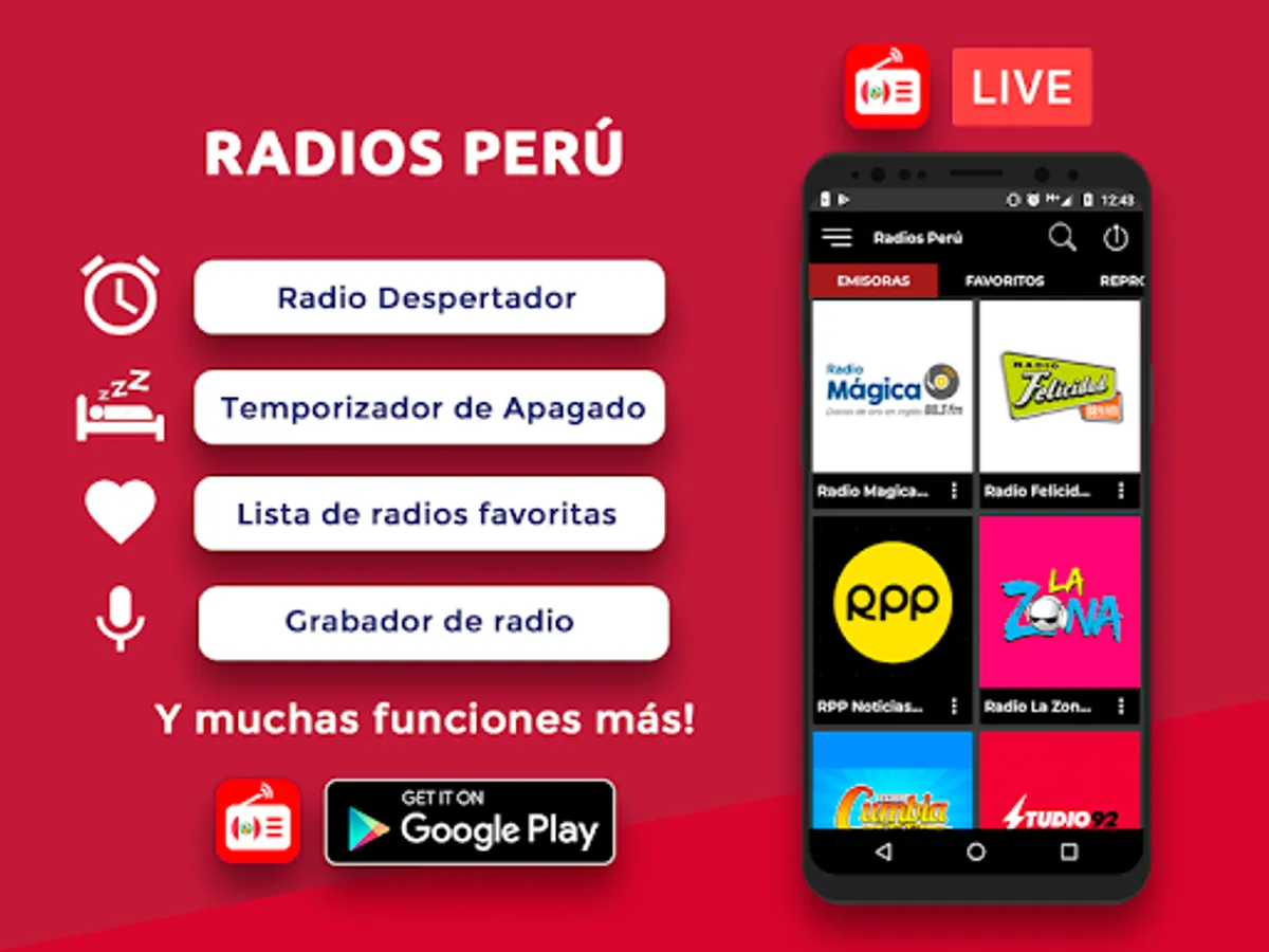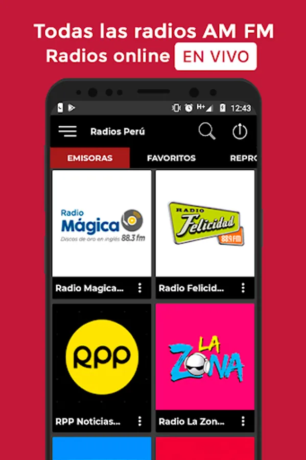 Without unnecessary ornaments and without functions that consume memory. Only free FM AM radio from Peru live.