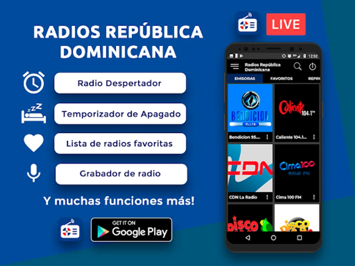 Without unnecessary ornaments and without functions that consume memory. Only free FM AM radio from Dominican Republic live.