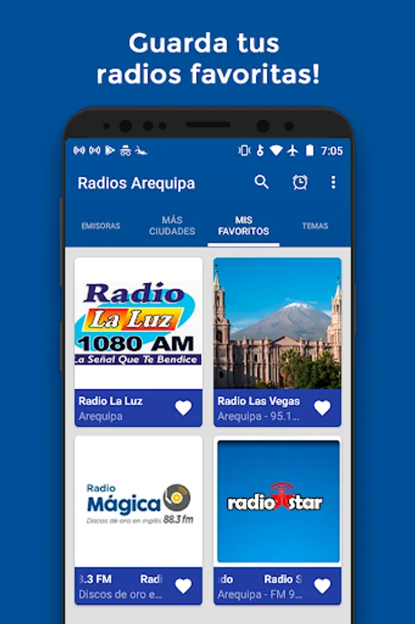 Radios Arequipa Peru FM & AM is an online radio application with many stations from the department of Arequipa in Peru 🇵🇪. With a modern, elegant and easy-to-use interface, the application will give you the best experience when listening to live radio and finding out about the latest news, football match results, listening to folk music, huaynos, salsa, Peruvian cumbia , urban music and more.