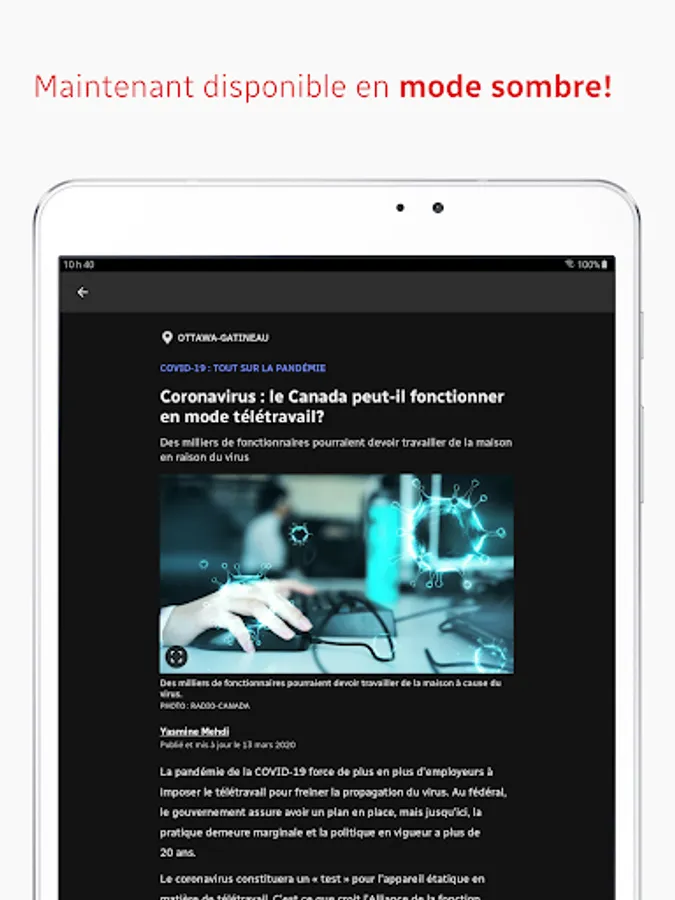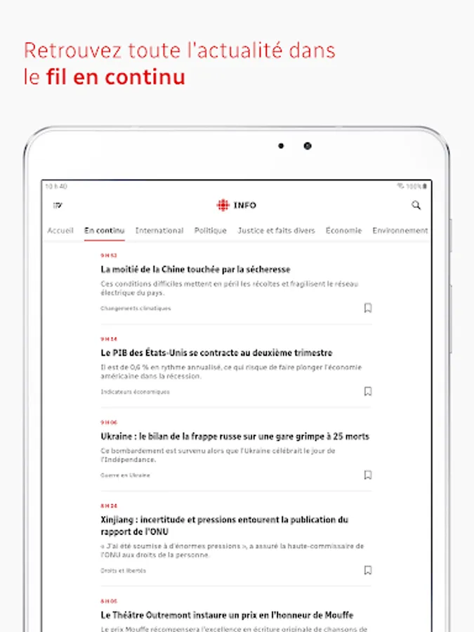 L'application gratuite Radio-Canada Info est le moyen le plus simple d’accéder 24 heures sur 24 à toute l'information provenant de nos salles de nouvelles partout au Canada ainsi que de nos correspondants en poste partout dans le monde.