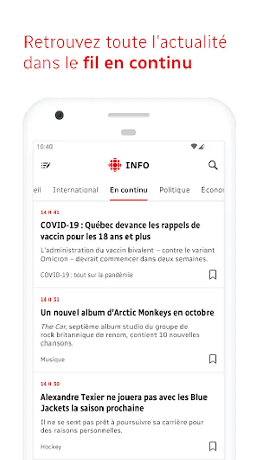 - Suivez l'actualité de minute en minute avec nos fils en continu, qui sont aussi offerts pour votre région.