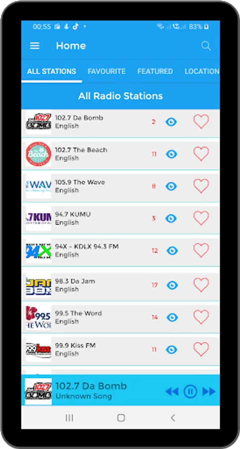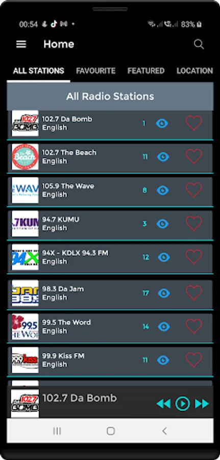 ☑️ Adding Stations to Favorites - Play any station in the list and add your favorites to favorite tab by clicking the heart icon next to the station.