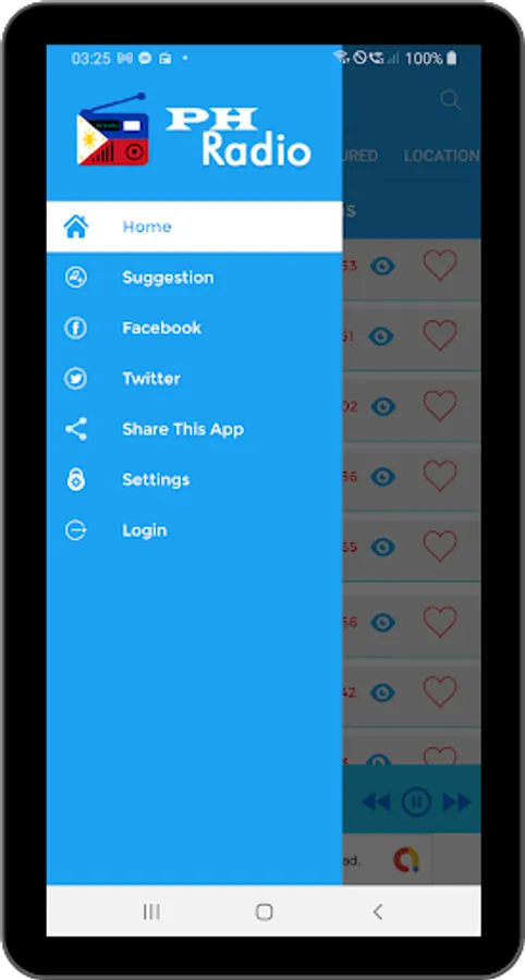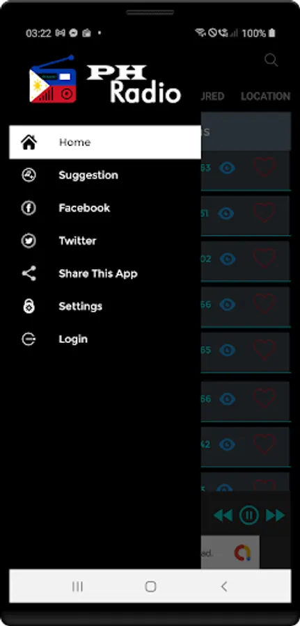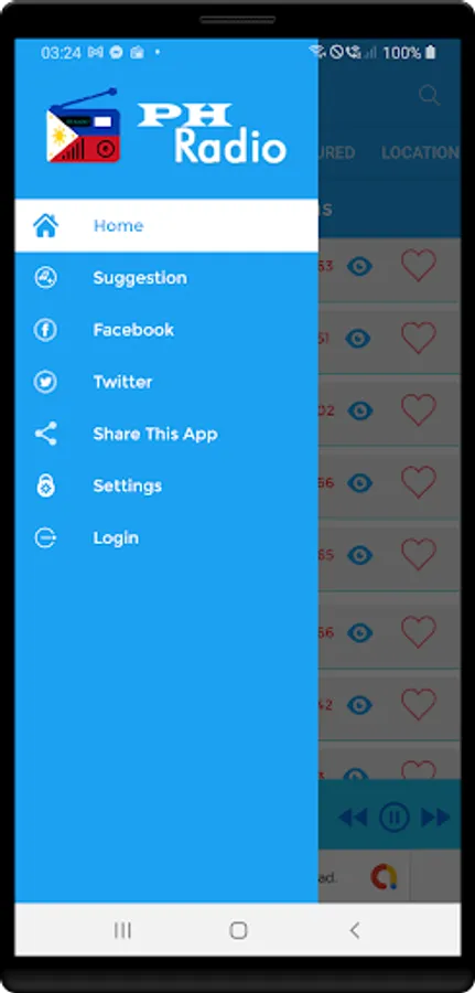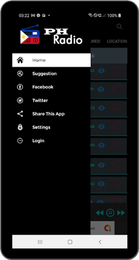 ⭐Radio PH – Filipino Live Radios⭐ is an application that lets you listen to different FM and AM radio stations in the Philippines. It comes with all the radio stations in Philippines. If you have a favorite radio station that is not yet in the app, kindly send an email to radiocavern@gmail.com or submit request through the app menu.