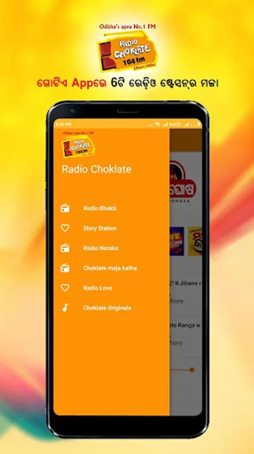 This mobile phone app of Radio Choklate is first of its kind in India that provides access to six radio verticals, namely: