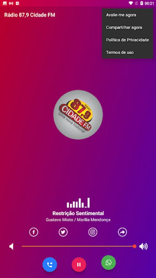 Community Radio City FM, 87.9. Founded in June 1998, by the Association of Small Producers and Residents of Carinhanha. The station provides service to the community, mainly in the community area. The radio is located at Rua Capitão Arthur Lima, in the district of Sudene, and is open 24 hours a day.