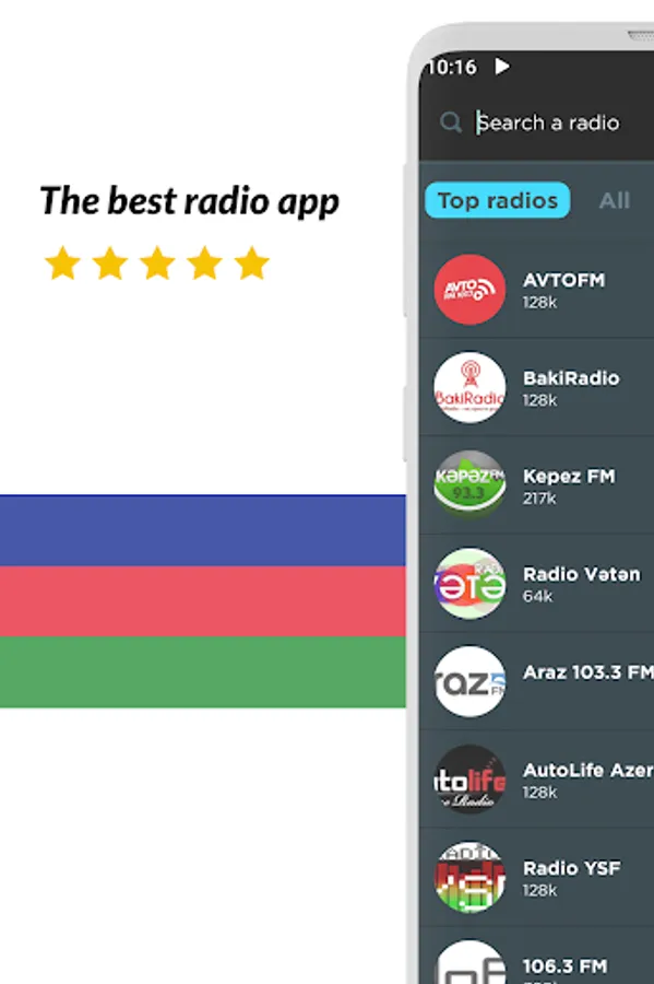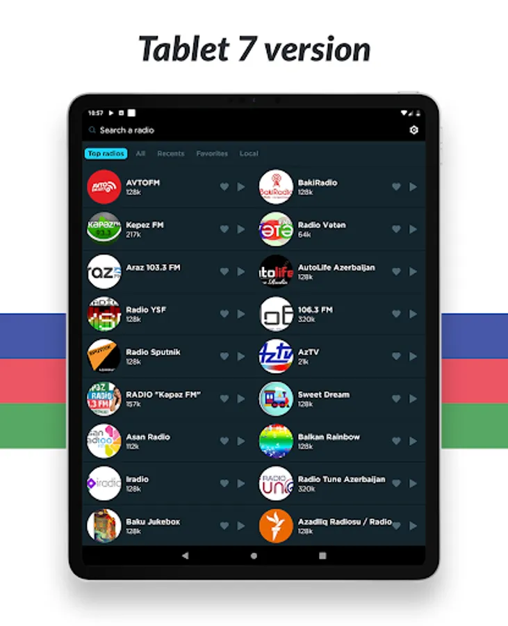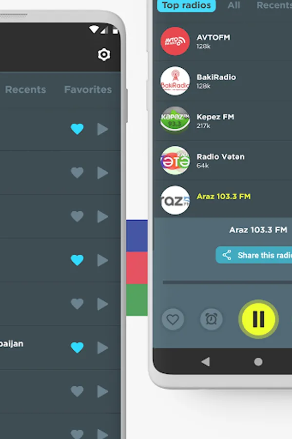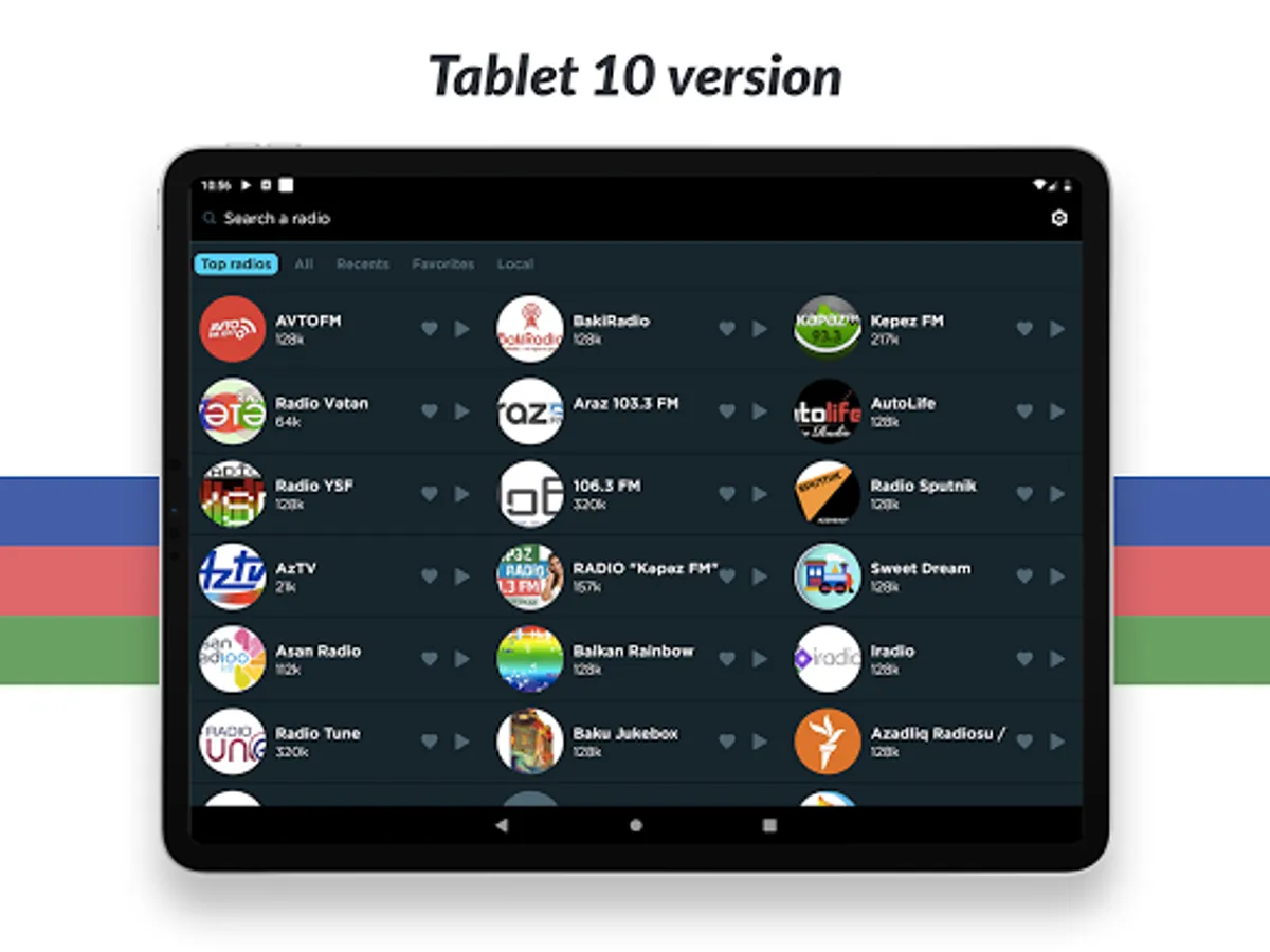 Listen to all your favorite radio stations like Space 104, MIX 3, Naxcivan su 104.1, Jazz.az, Kəpəz 93.3, Vətən, Xoş xəbər, 106, Auto Life, Europa Plus, Baki, Araz 103.3, Sweet Dre, Asan, Balkan Rainbow and many more! And no matter what city or country you are in, you can listen to your favorite local radio station from anywhere in the world!