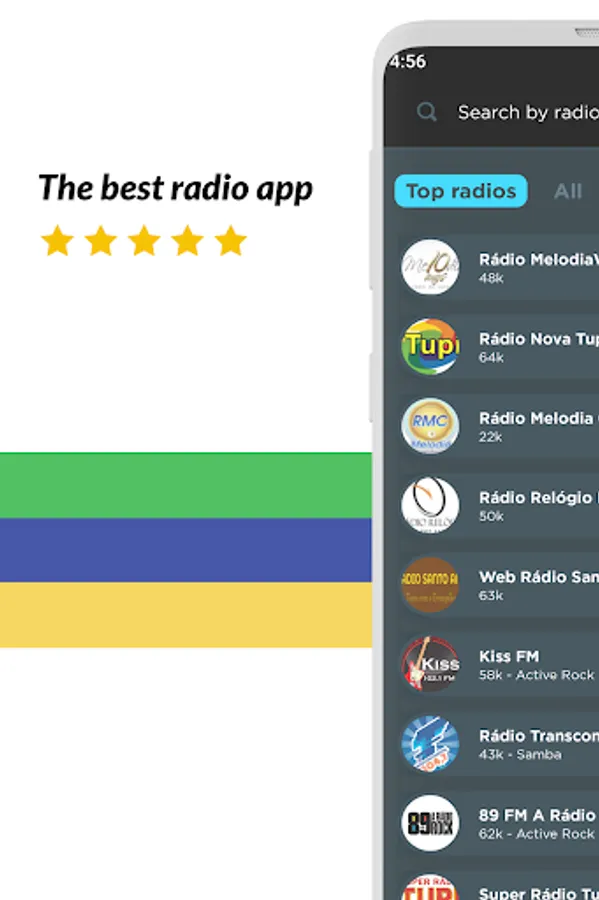 The ideal radio player to listen live and free to the best music, online radio, FM radio and AM radio from Brazil!