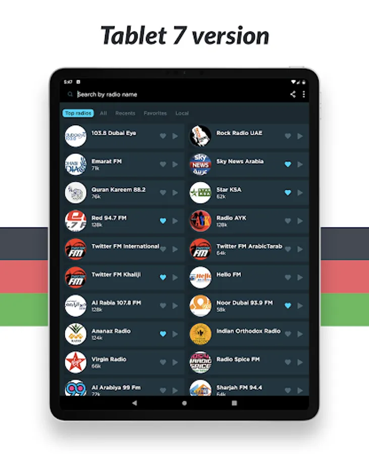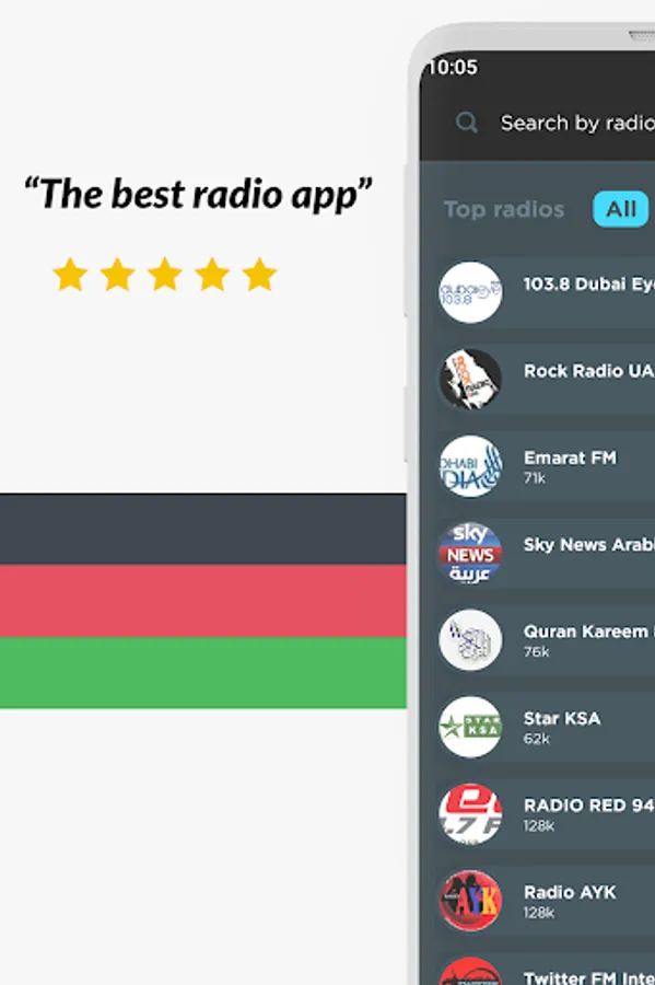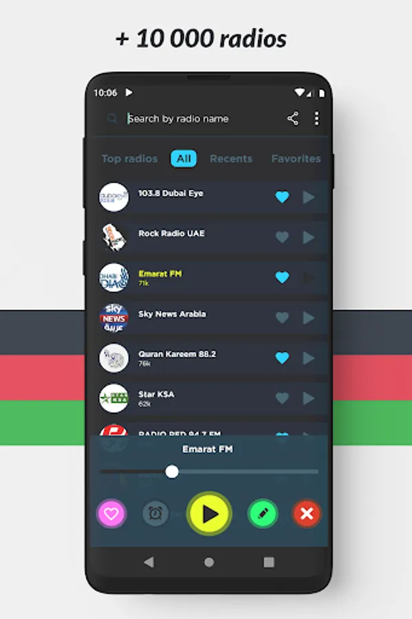 The ideal radio player to listen live and free to the best music, online radio, FM radio and AM radio from the United Arab Emirates!