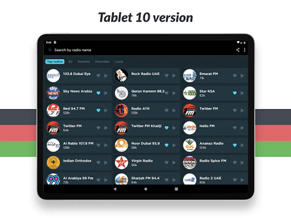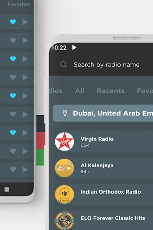 Listen to all your favorite radio stations like City 101.6 Dance UAE Only, Quran Kareem 88.2, Sky News Arabia, Mirchi 1024, ME 100.3, BEAT 97.8, Hit 96.7 Classic, LUV 107.1, BIG 106.2, 4 89.1, Suno1024, asia947, Mango, Suno, Sharjah 94.4 and many more! And no matter what city or country you are in, you can listen to your favorite local radio station from anywhere in the world!