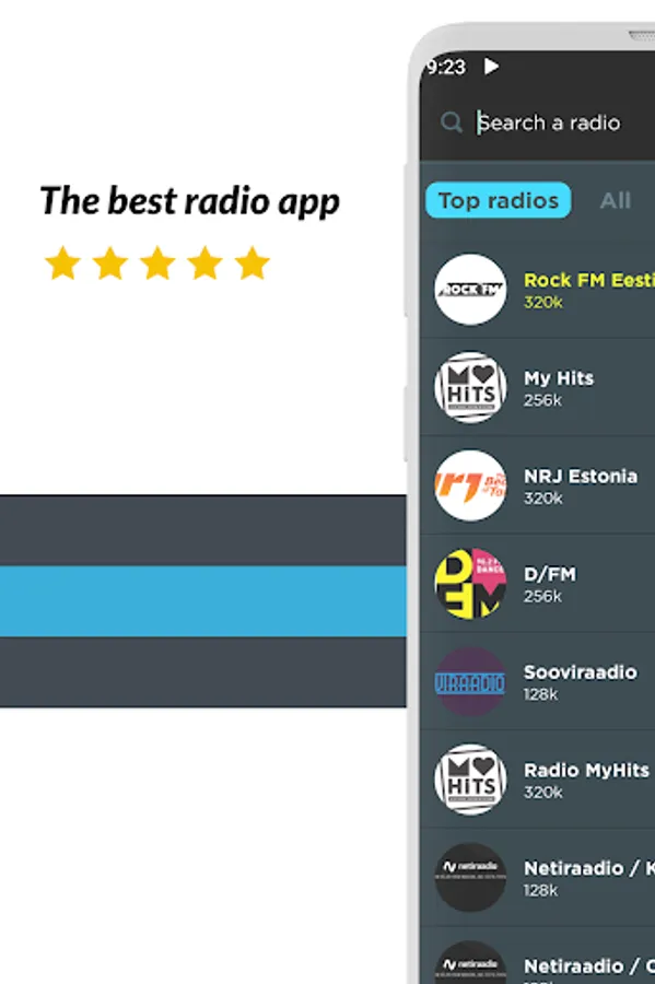The ideal radio player to listen live and free to the best music, online radio, FM radio and AM radio from Estonia!
