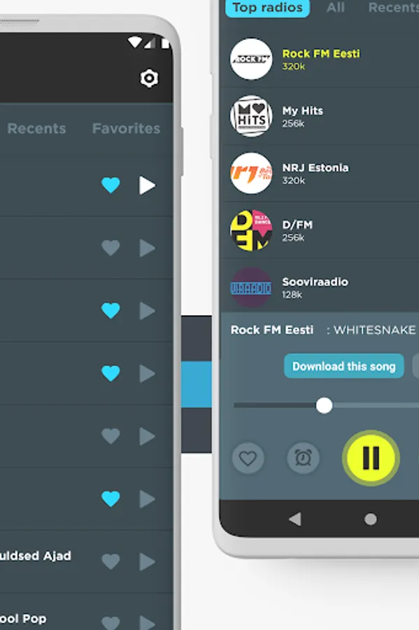 Listen to all your favorite radio stations like D TALLINN 90.2, ETV, ERR Viker, MyHits, Volna, Narodnoe 100.0, Rahva, Estonian Party, Tre, Relax Estonia, Sky Plus, Kadi, Soovi, Power Hit, Kuku and many more! And no matter what city or country you are in, you can listen to your favorite local radio station from anywhere in the world!