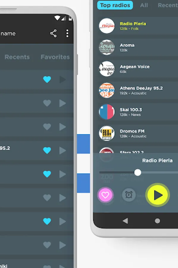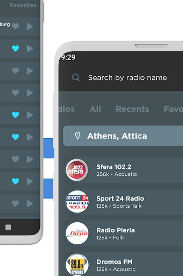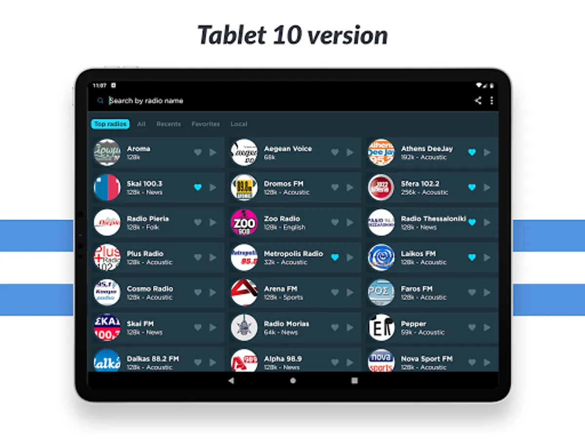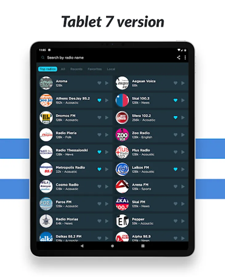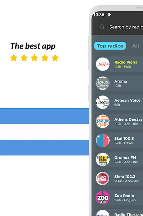 Listen to all your favorite radio stations like Love, Sfera, Dromos, Thessaloniki, Metropolis, Laikos, Cosmo, Sok, Skai, Rythmos 99.7, Melodia, Galaxy, Kiss 91.1, Diesi, Dalkas 88.2 and many more! And no matter what city or country you are in, you can listen to your favorite local radio station from anywhere in the world!
