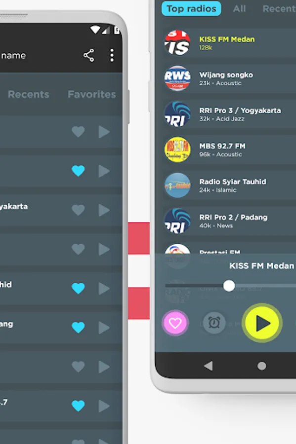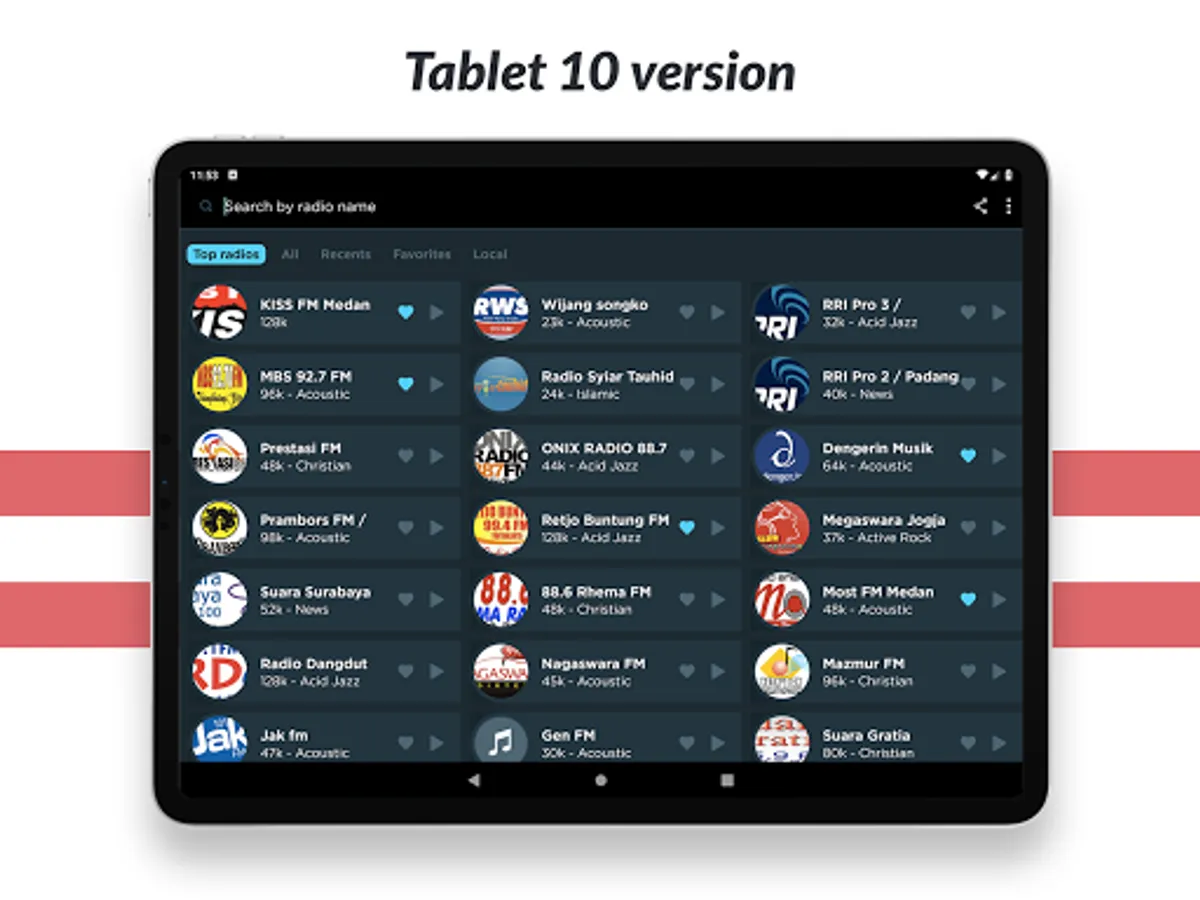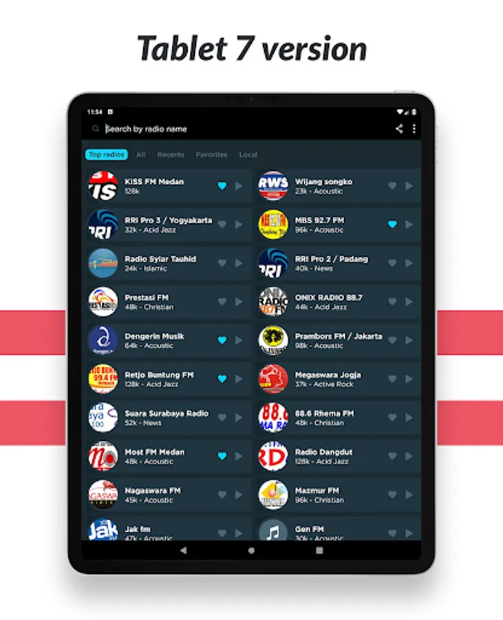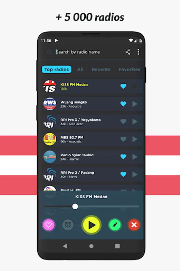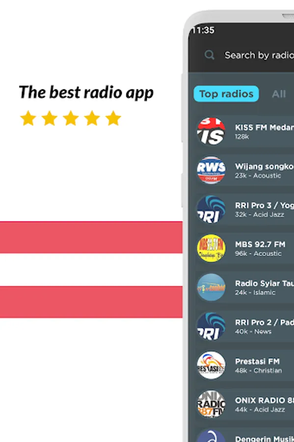 The ideal radio player to listen live and free to the best music, online radio, FM radio and AM radio from Indonesia!