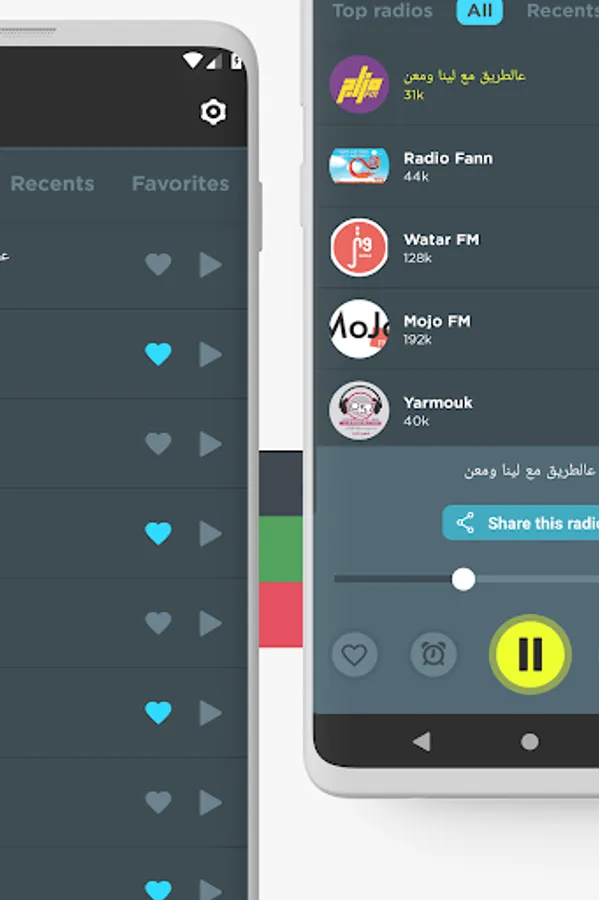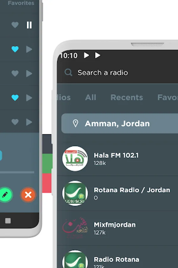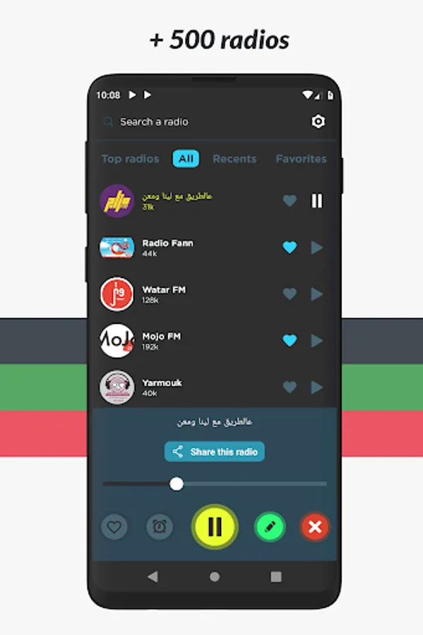 Listen to all your favorite radio stations like Husna, Balad 92.4, Watar, Dahab, Adwaa6, Al Orthodoxiya, Talal Abu Ghazaleh Business and Culture Station TAGBC, Watan, Alsh Today, Monte Carlo Doualiya, Mixjordan, Nasha, Mood 92, Play 99.5, Yarmouk and many more! And no matter what city or country you are in, you can listen to your favorite local radio station from anywhere in the world!