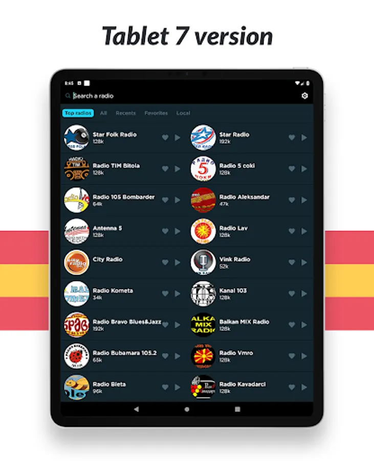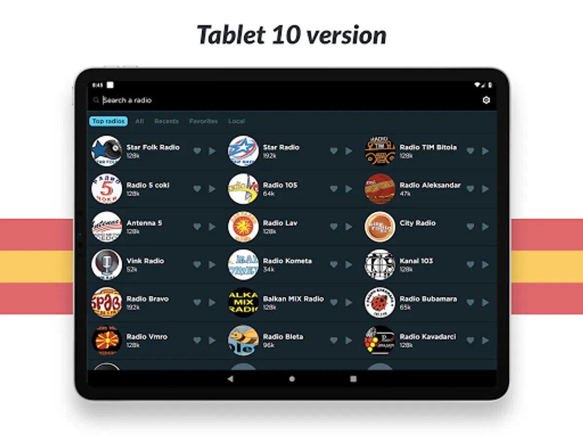Listen to all your favorite radio stations like STIL MKD NARODNA, Star Ex Yu Retro, Mini Folk, TE TURKE, Kavadarci, Kanal 77, Zona M1 104.4, 5, MEFF Prilep, 105 Bombarder, Fortuna, DMZ Macedonia, Metropolis, Mix, Stip and many more! And no matter what city or country you are in, you can listen to your favorite local radio station from anywhere in the world!