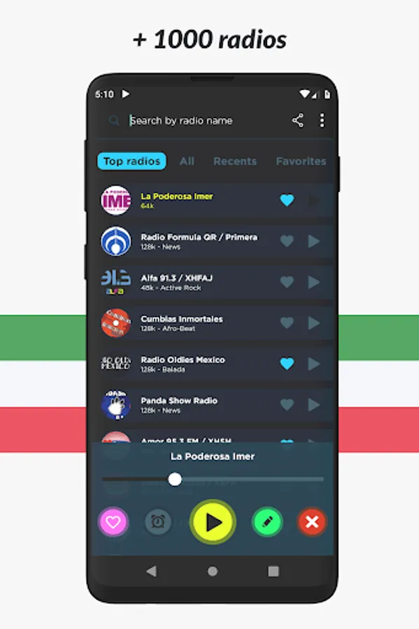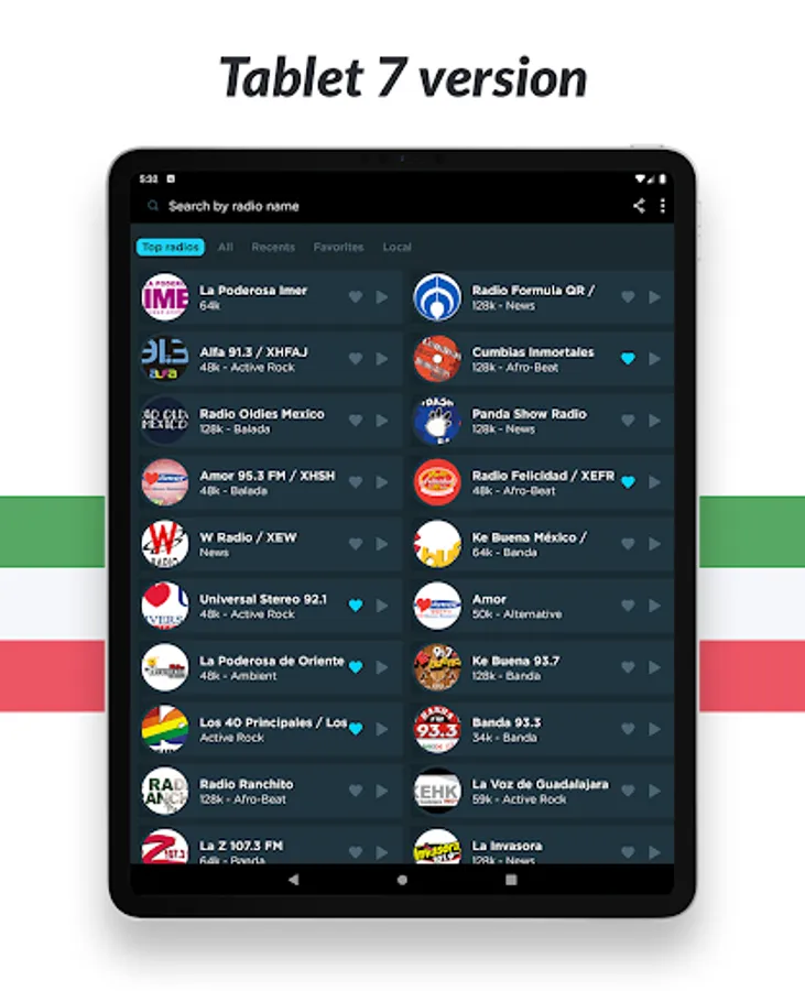 The ideal radio player to listen live and for free to the best music, online radio, FM radio and AM radio from Mexico!