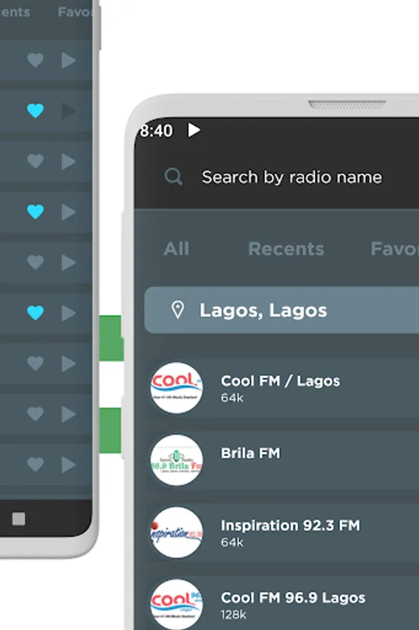 Listen to all your favorite radio stations like Inspiration 92.3, Cool 96.9 Lagos, Faaji 106.5, Arewa 93.1, Raypower 100.5 Abuja, Voice of Nigeria, Fresh 105.9, BBC Hausa, Splash Ibadan, Premier, Magic 102.9 Aba, Lagelu, Adaba, Freedom, Yoruba and many more! And no matter what city or country you are in, you can listen to your favorite local radio station from anywhere in the world!