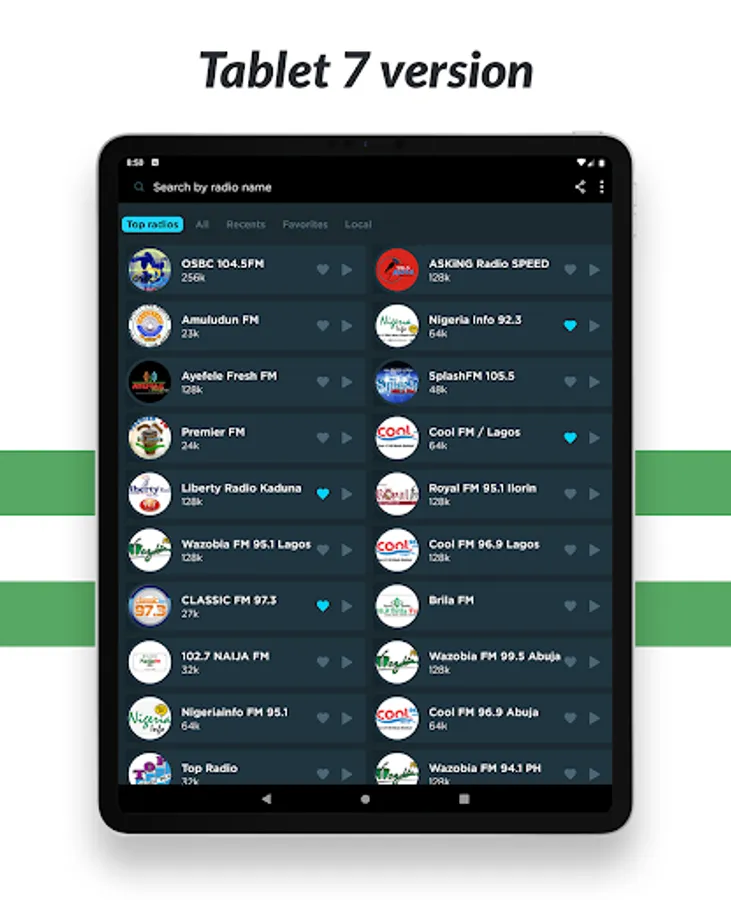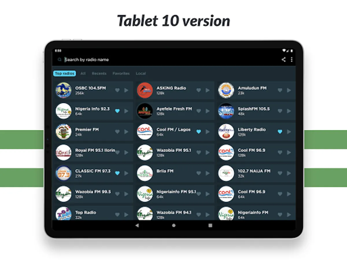The ideal radio player to listen live and free to the best music, online radio, FM radio and AM radio from Nigeria!