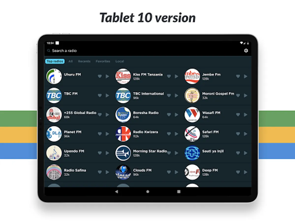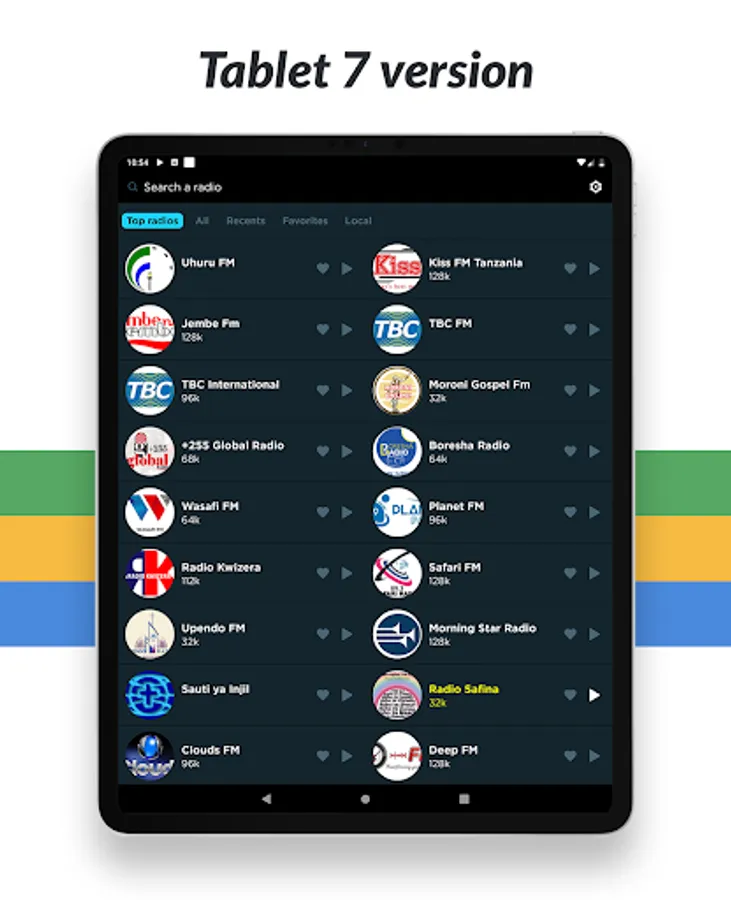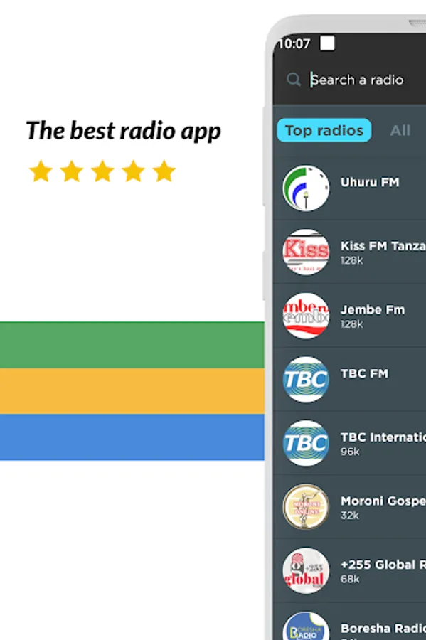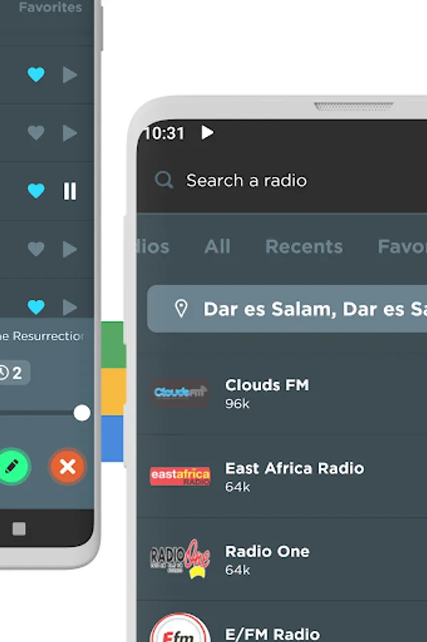 Listen to all your favorite radio stations like Twiga, RFA Free Africa, Mashujaa, Sauti ya Injil, A 92.9, One Stereo, 87.5 Planet, Standard Tz, Uhuru, Jembe, Capital, Kwizera, Clouds, Bongo, TBC Taifa and many more! And no matter what city or country you are in, you can listen to your favorite local radio station from anywhere in the world!