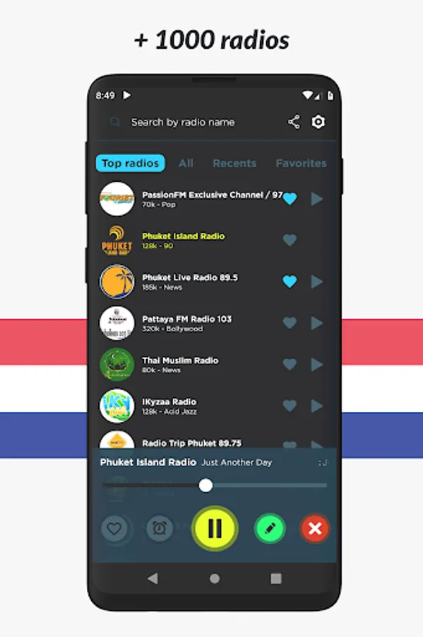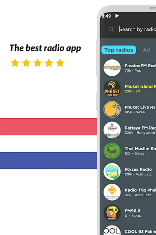The ideal radio player to listen live and free to the best music, online radio, FM radio and AM radio from Thailand!