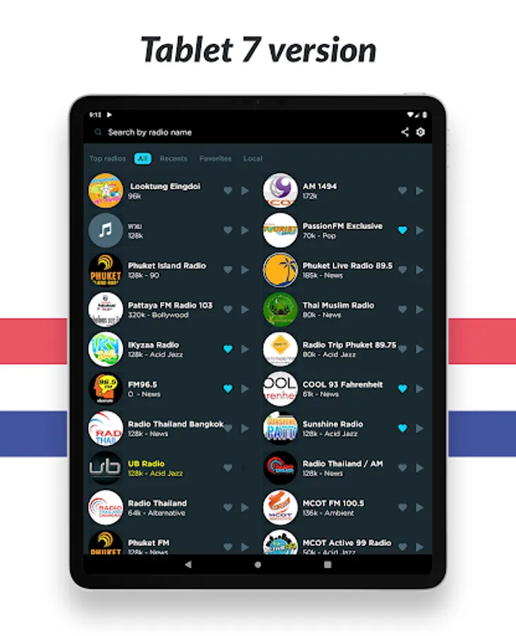 The ergonomics of Radio Thailand has been studied to be the simplest and fastest radio application, thus offering you a fun and easy listening experience đ