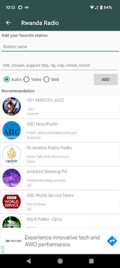 6. Add stations: If you know streaming url of a station that not included in the app. You can add it manually in our app.