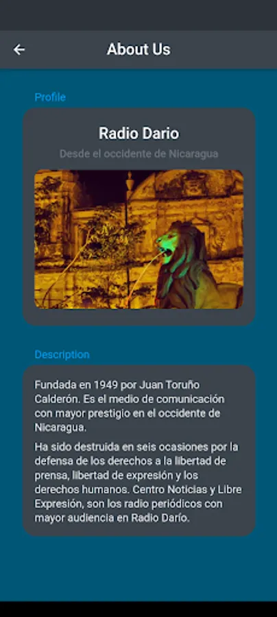 This is the official App of Radio Darío de Nicaragua, to listen to its programming live from your device at any time, without interruptions.