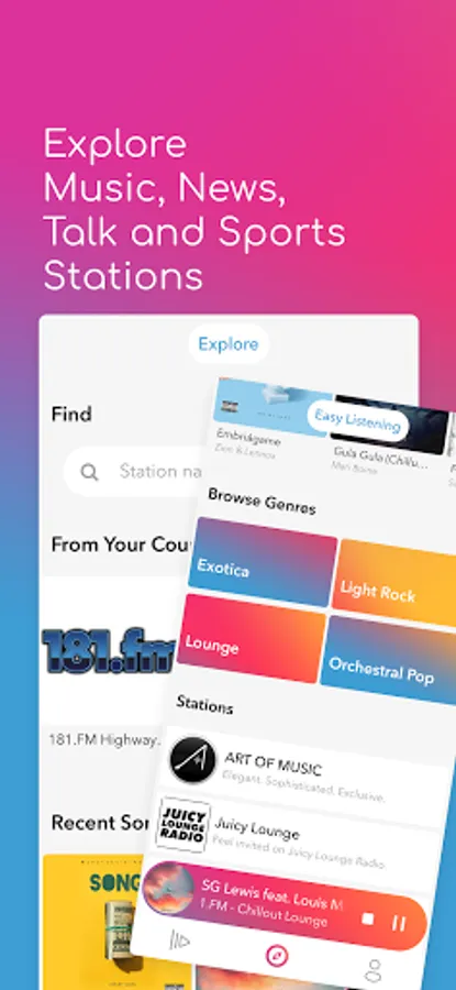 Find your desired station by exploring your local area, browse various genres or just call it by its name.