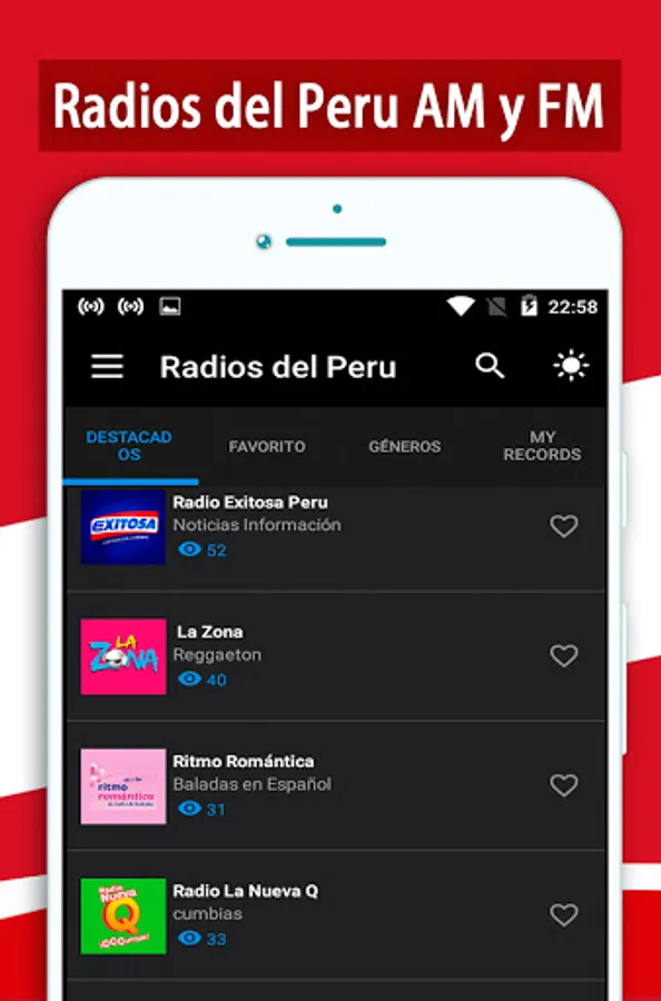 Radios del Peru live and Listen to your Live Radio Stations, Favorites and enjoy your broadcasts of Radios del Peru AM and FM live app has for you.
